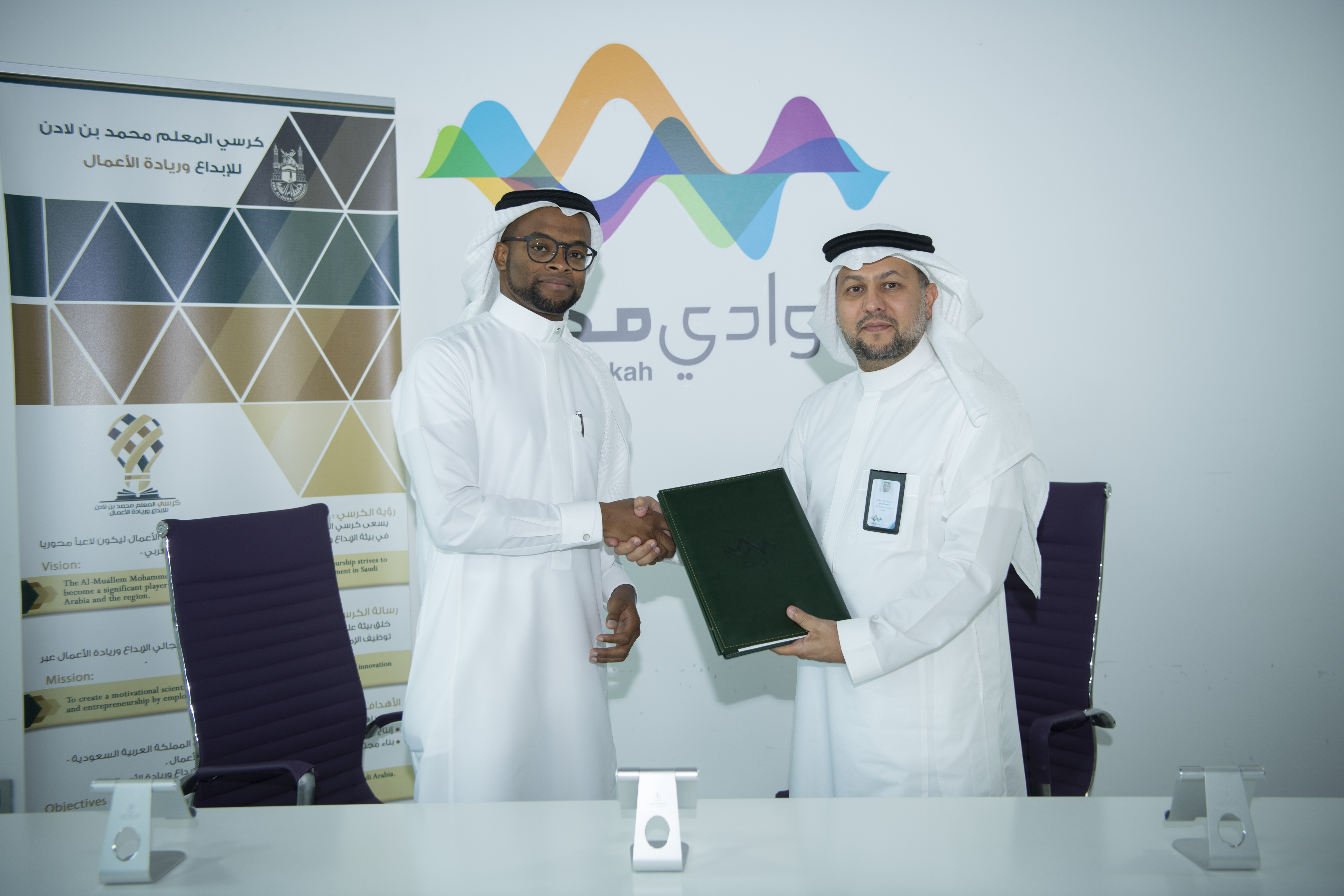 توقيع مذكرة تفاهم بين شركة وادي مكة للتقنية وكرسي المعلم محمد بن لادن لريادة الأعمال (٢١ أكتوبر ٢٠١٨م)